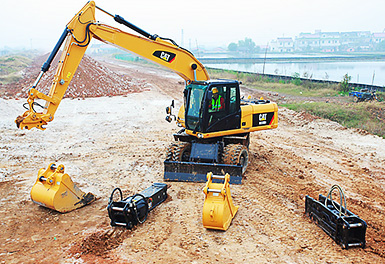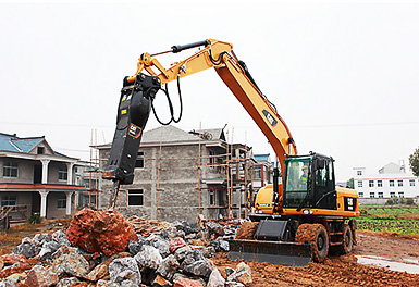 5 . 底盤系統與工作裝置:重載全橋驅動,濕式制動器以及出廠標配液壓錘管路,還能提供多種機具