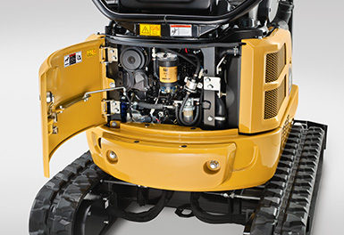 5 . 通过大型钢制后门和可拆卸的侧板,可以方便地检修日常检查点与常规维修点(包括燃油与液压油加注口)